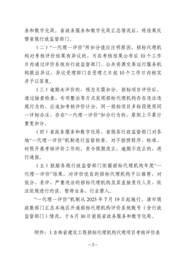 附件:1.吉林省建設工程招標代理機構代理項目考核評價表